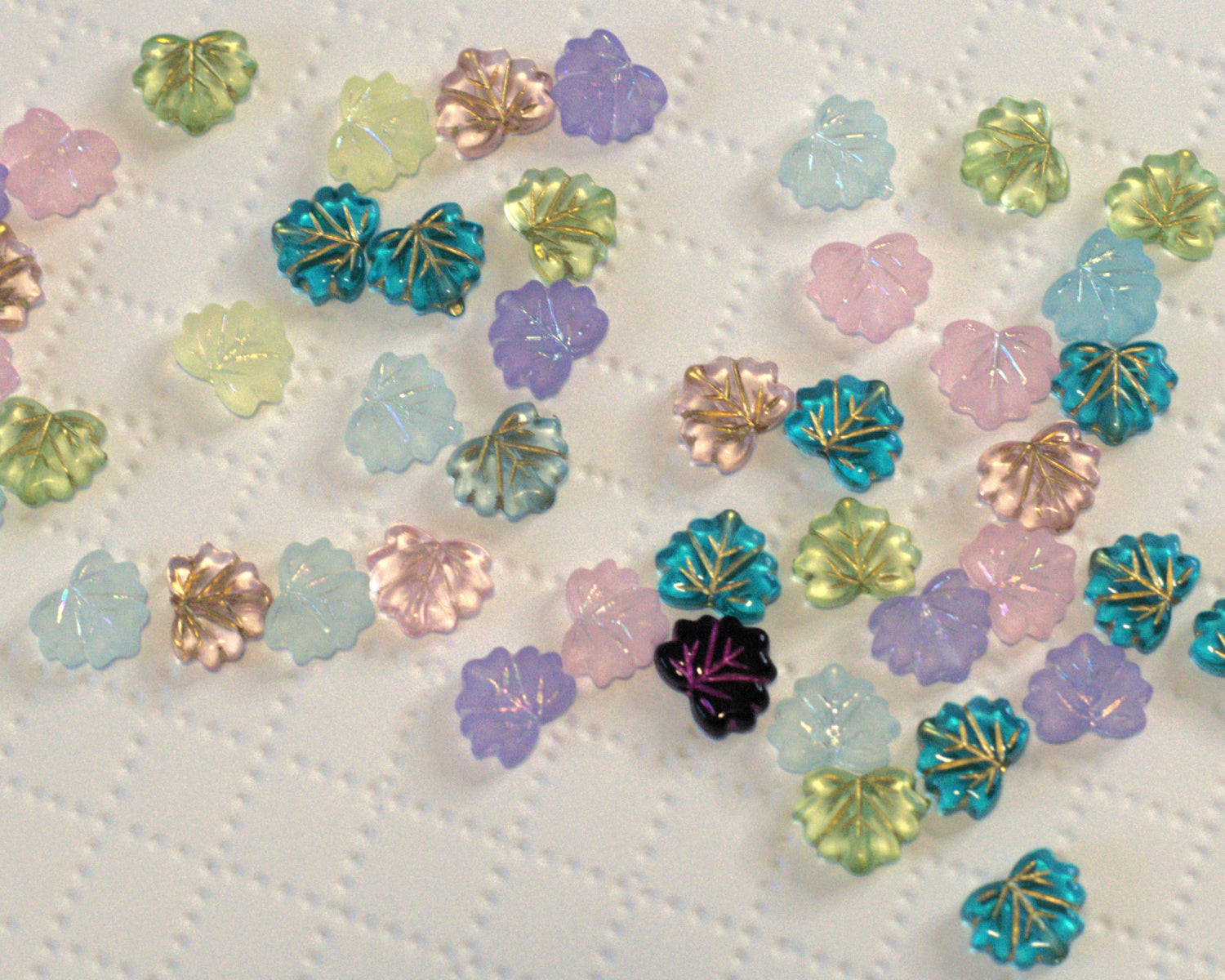 Czech pressed glass beads. Mostly focal beads like cats, flowers, leaves, and...