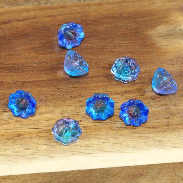 Premium Two-Tone Glass Lotus Pod Beads, Blue & Purple, 10.5mm, 8 pcs