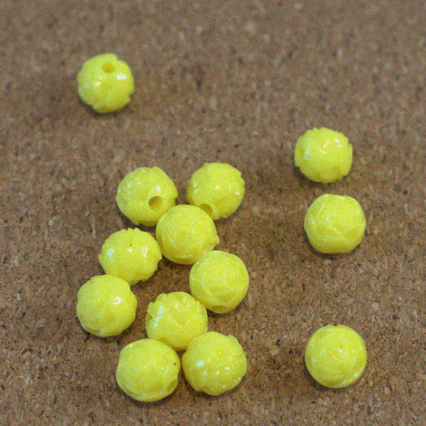 Vintage Plastic Rosebud Beads, Yellow, 12 Pieces, 1970s Hong Kong