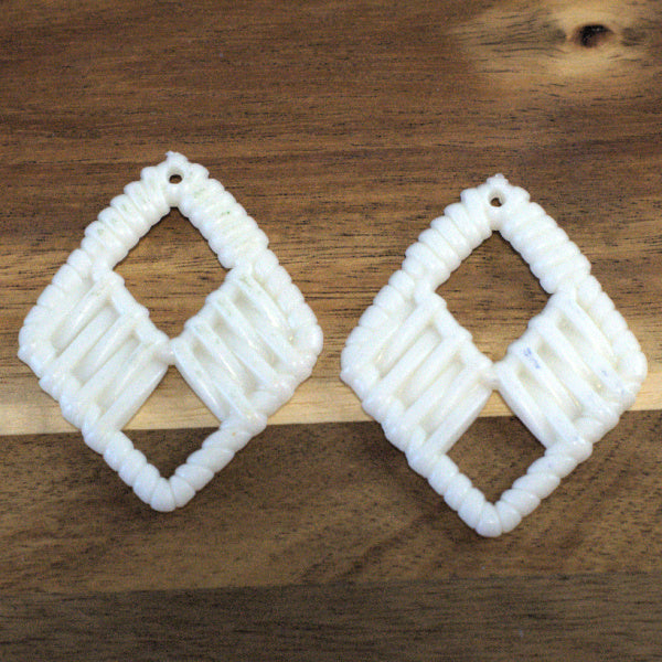 Acrylic Rattan Style Pendants, Ivory White, Large Diamond, 2pcs